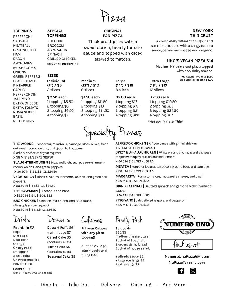 Numero Uno Pizza is a beloved establishment in Los Angeles, offering a variety of delicious options for pizza lovers. Located at 18531 Burbank Blvd, this restaurant provides a range of amenities such as delivery, takeout, reservations, wheelchair accessibility, catering services, and more. Customers rave about the friendly staff, fresh ingredients, and delectable pizza options. Reviewers highlight the deep dish pizzas with sweet bread crust, flavorful toppings, and perfectly melted mozzarella. The menu includes favorites like the deep dish pepperoni and the bianco spinaci pizza, as well as scrumptious Alfredo pasta. With a cozy atmosphere and top-notch service, Numero Uno Pizza is a must-visit spot for a memorable dining experience in the heart of Tarzana.